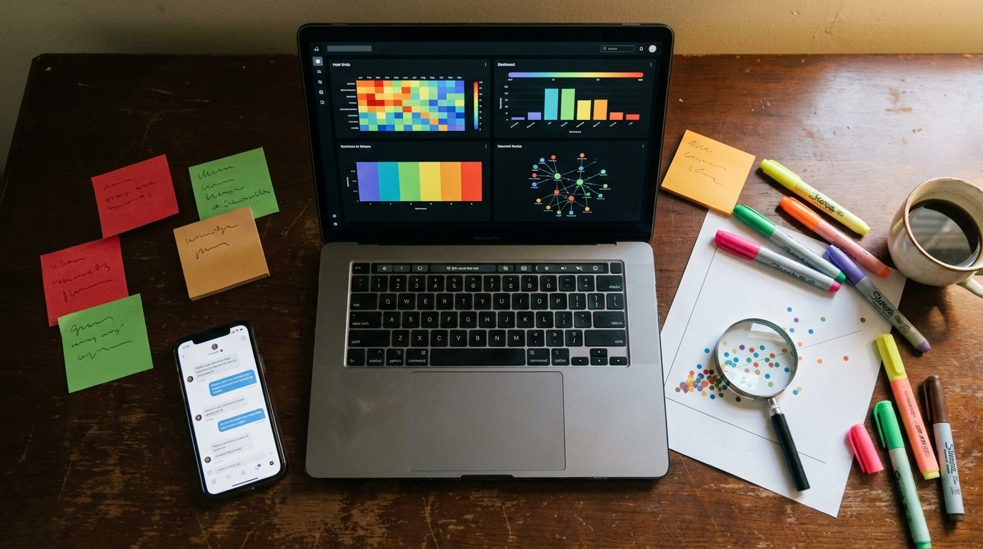 We calculate metrics including total views, average views, total retweets, average retweets, and net impact scores for each category, then compare your position against opponents to identify shared issues, winning messages, areas for improvement, and weaknesses to exploit.